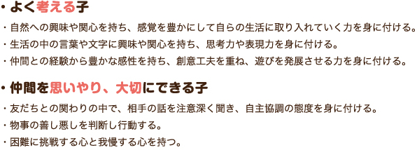 1. 私達は、園での生活が子どもに最善の利益がもたらされる保育を目指します。